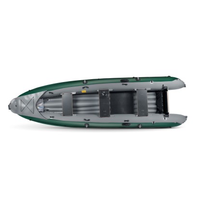 aus praktischen Gründen an den Seitenrohren angebracht, sodass sie den Innenraum des Bootes nicht einschränken, und die 5. Basis ist für die eventuelle Positionierung auf dem mittleren oder hinteren Sitz vorgesehen). Mit Kanupaddeln, ohne Motor und Ruder, kann dieses Boot für Flussfahrten bis zur Schwierigkeitsstufe 2 verwendet werden.